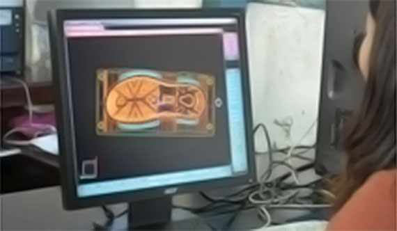 根据设计师的设计理念进行鞋底平面图纸的设计,确认,修改。